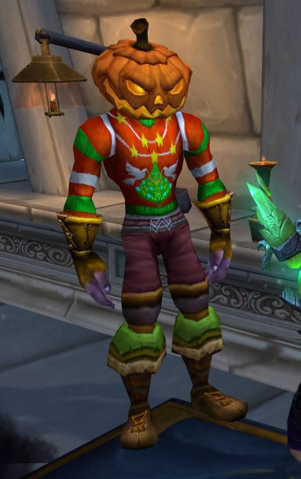 帽子: 萬鬼節的buff或是巨型南瓜燈籠 https://www.wowhead.com/item=33292/hallowed-helm