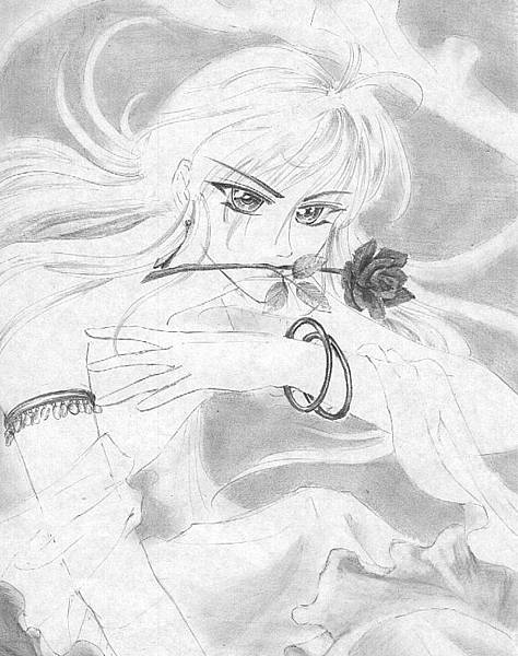 記得是上課中 一如往常的塗鴉(咦?!)突然想到幽遊白書裡面1-3集裡 有一頁插圖 是"盛裝的牡丹" 然後就變這樣了... 重點是想試著在頭髮上加上花朵而已