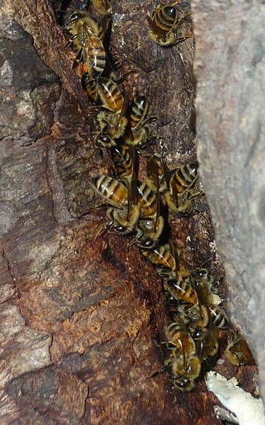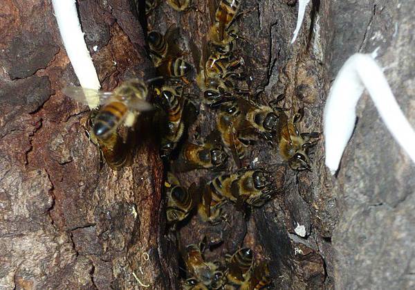 今天下午下大雨前拍的 蜜蜂都匆忙的趕回來 結果擠在門口