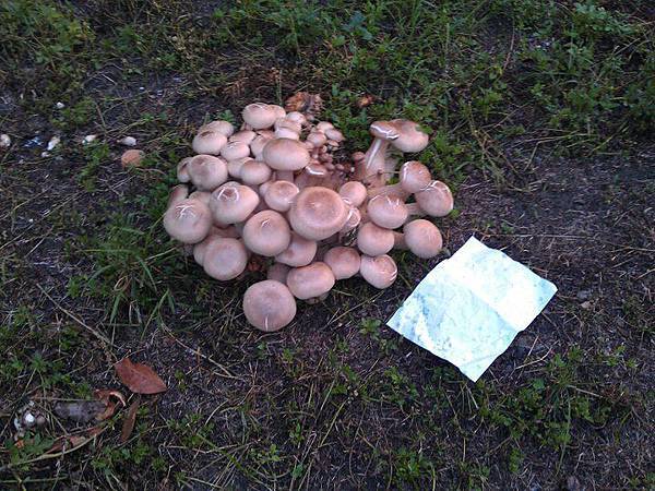 或著是像前幾個禮拜 同一個地區的綠褶菌又冒了一大批出來