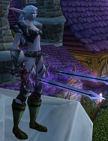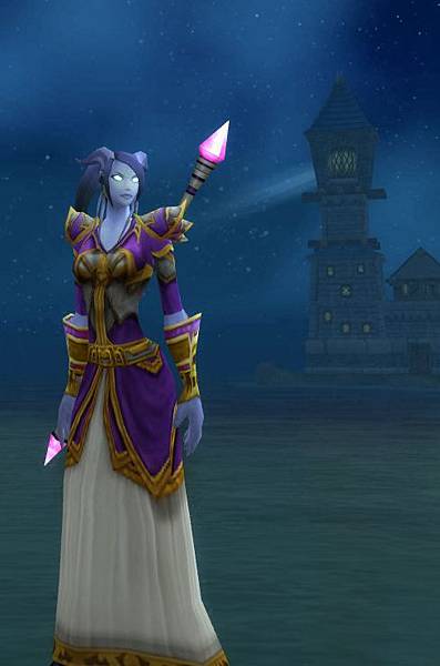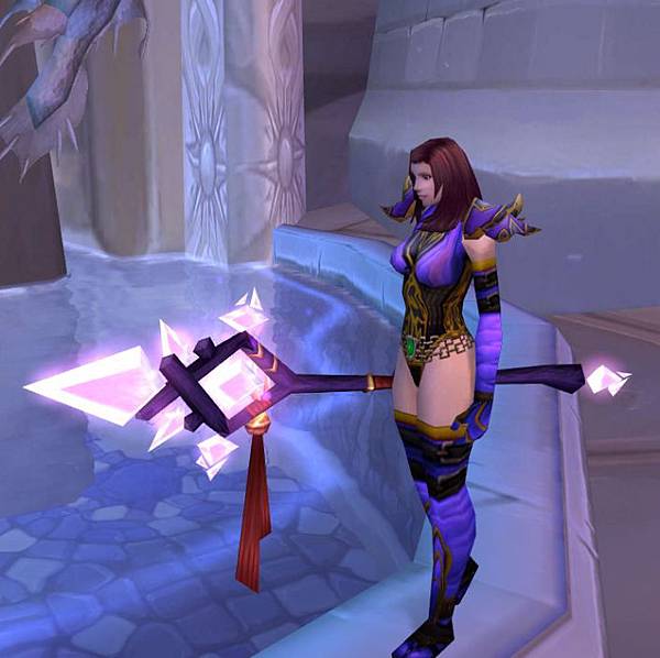 肩膀:紫藍花肩襯 (這個是絕版任務裝, 不過其他紫色的布甲肩也很適合的, 像是"奧秘披肩")