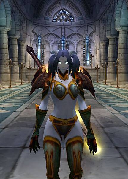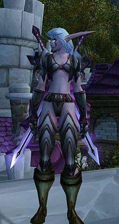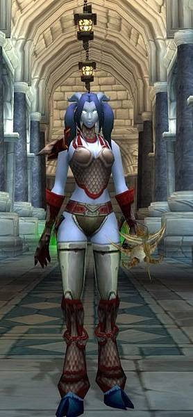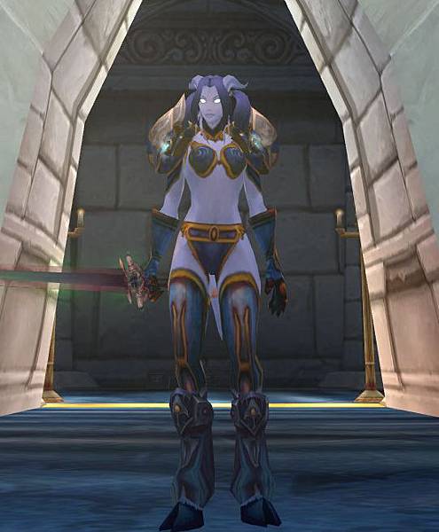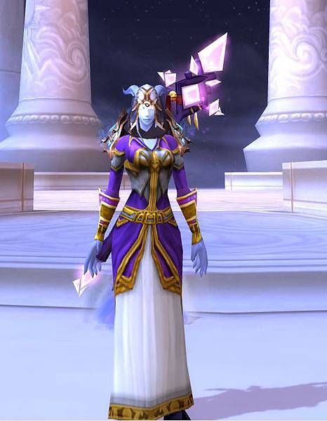 其他職業可以去達拉然換 金: 騎兵肩鎧, 銀: 顫抖怒火肩鎧, 灰: 耐久命令重肩甲 來搭也不錯 尤其與德萊尼藍色的皮膚很合