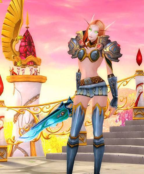 終於啊!!! 我可憐的血精靈聖騎士總算是被我弄齊了!! 還好有庫存的崇高!!(也感謝Z大給我的靈感, 實在是不好意思再麻煩人家做真銀胸甲了)