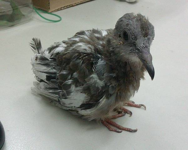 一看到牠 發現年紀跟我剛撿到那隻笨鴿子時差不多 當然體型小很多