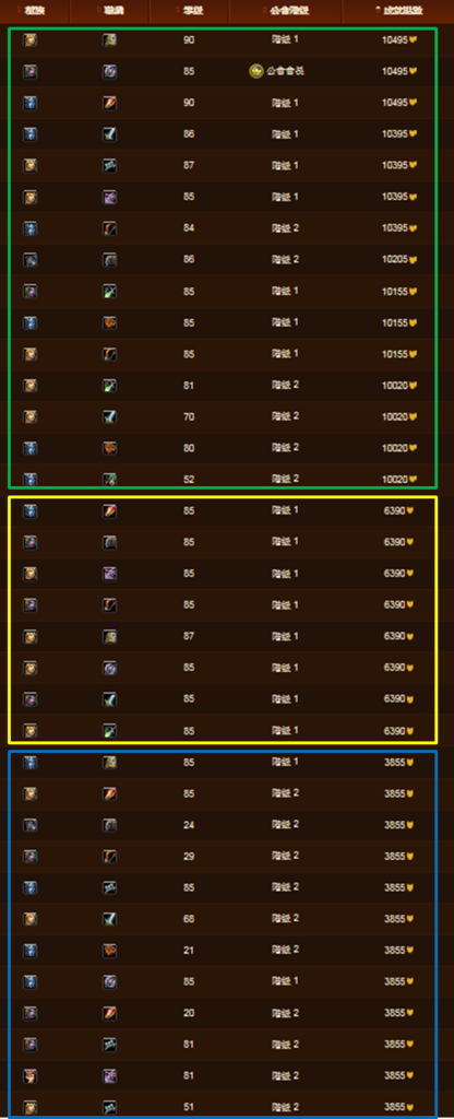 像我們這種兩人公會 基本上看名冊的成就點數就會知道哪批是同帳號了 也可以大概知道 這個公會有幾個帳號 非常的透明啊!!