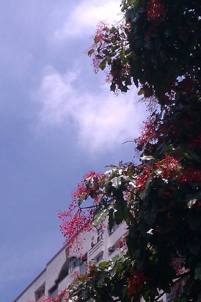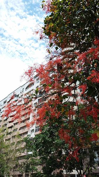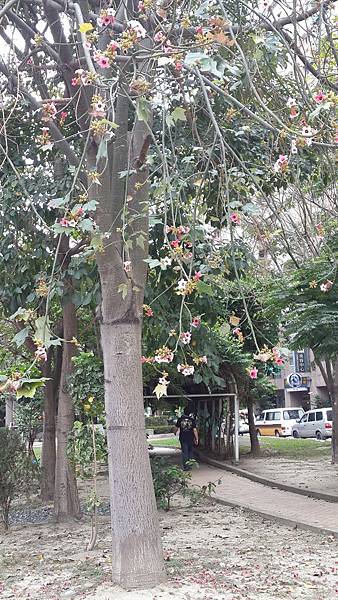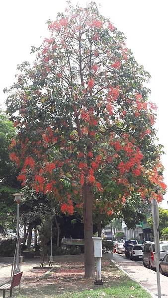 位置在南天王前面的綠園道 那邊除了這棵 還有澳洲蘋婆 不過澳洲蘋婆已經很久沒開得很好了 花都零零星星的 可能是氣候的關係