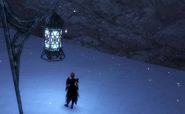 雪地的煤燈 當我拍得正高興的時候 緋紅(翻譯叫思嘉 不過其實那是緋紅的意思)就找上來了...... 黏了我整場 後來也常看到有人被黏整場 抱怨連連 但是我倒是覺得很幸運(?) 只是砍樹拔草挖礦或發呆可能皮就要繃緊一點...