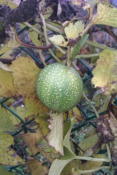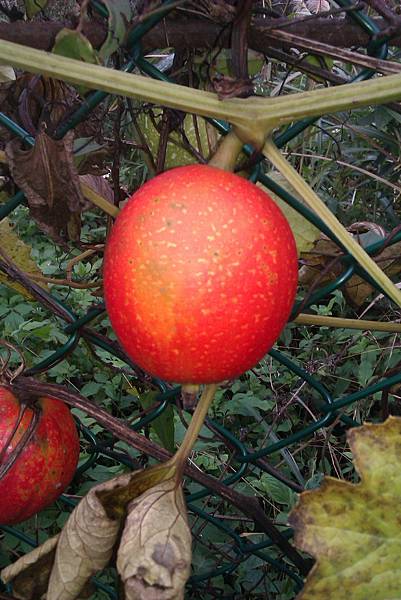 在果園的圍籬上看到了一顆顆紅色的果實