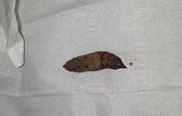 結果剛剛........ 我發現蛹不在原本的位置上 被衛生紙蓋住了?! 仔細往昆蟲盒裡看 發現牠羽化了!!!