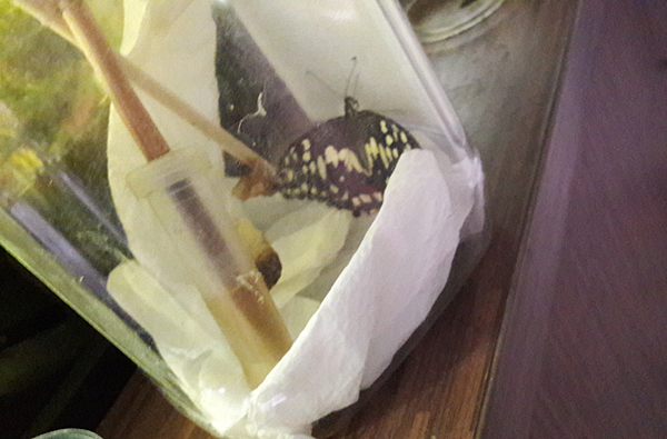 比對了蛹身上抓蟲的位置 之後結痂的的位置 以及成蟲缺鱗粉的位置 確定是同一隻<3