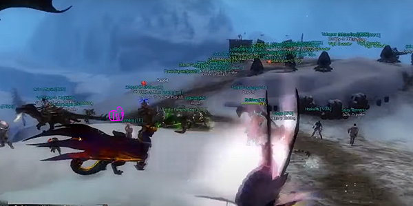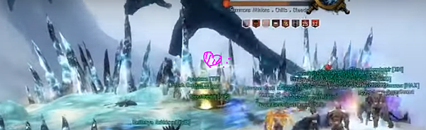 這邊站的位置就是我的驕傲點XD 上坐騎是為了不被恐 因為Jormag一下來就會先恐個3-4次 很煩 除非他bugged才會直接crash